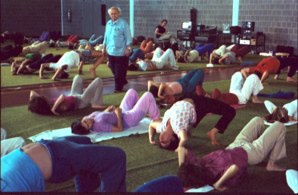 Dr. Moshe Feldenkrais teaching Awareness through Movement to his students in Amherst: